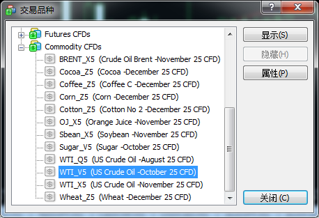 那如何添加成功进入MT4中显示出来呢,你打开IC的MT4,然后登录交易账户,在左边的交易品种点右键,出来一个交易品种,点开之后所有的交易品种都在这个列表中,然后找到commodity cfds这一组,点开后 就会出现上面的数据。交易易原油前请注意确认合约细节:开始交易前,务必了解合约规格,例如合约大小、点值、保证金要求以及交割日期(如果是期货合约)。高波动性与风险:原油价格波动剧烈,且平台通常提供较高的杠杆,这既可能放大收益,也可能加剧亏损。请务必合理规划投资,管理好风险