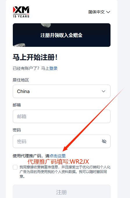 是的,在XM外汇平台进行外汇开户时,是有一个步骤需要填写代理推广码,这个推广码的作用就是填写之后可以分配到对应的IB名下,这样才方便申请返佣服务,比如说财富外汇返佣网的XM代理注册推广码是:WR2JX