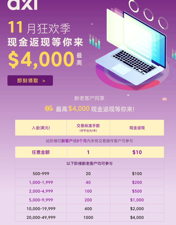AXI外汇平台2025年11月返现活动