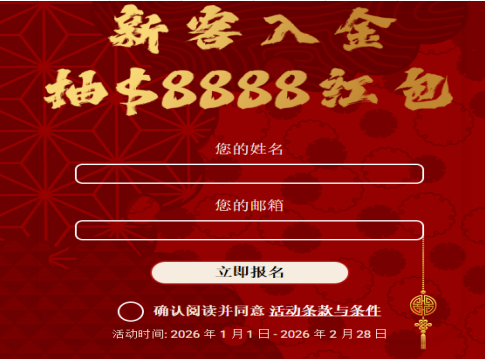IC Markets Global最高可以达到8888的红包活动奖励,开设账号在 IC Markets Global 开设一个真实交易账户(如果您在此活动开始前尚未拥有一个);您于活动期内在真实账户存入不低于 $200 美元的首次入金,并完成不少于 2 个标准手有效交易订单;您在本活动页面填写活动报名表确认参与活动,我们会在活动结束后向您的注册邮箱发送专属抽奖链接,您通过专属抽奖链接抽取马年红包。